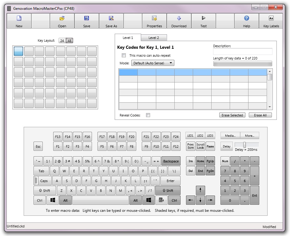 Your custom macro key definitions are stored within the CP48-USB Virtual Serial’s internal FLASH memory allowing it to operate as a stand-alone serial ASCII keyboard.